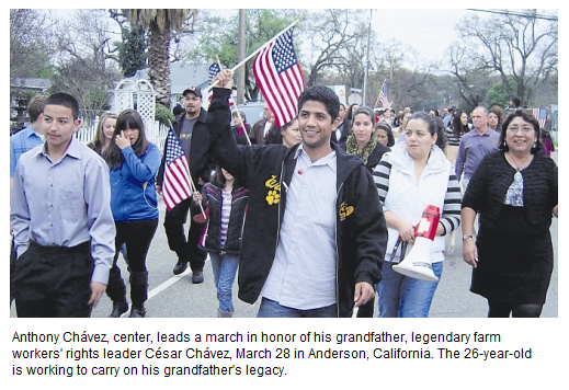 Two days before the state holiday that bears his grandfather's name, 26-year-old Anthony Chávez visited Pittsburg High School on Thursday to tell students about the legacy and hopeful future of César Chávez.